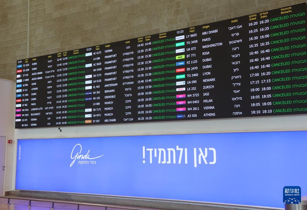 2月28日,在以色列特拉维夫附近的本-古里安国际机场,航班信息牌显示所有航班取消。
