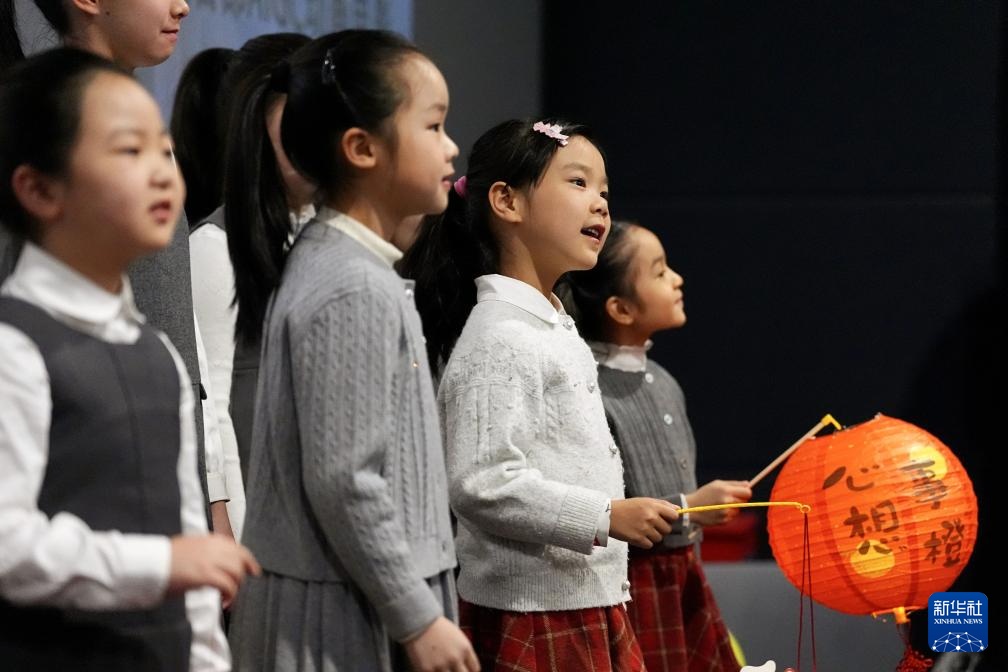 3月1日,小朋友在电影《团圆令》的观影活动上演唱主题曲。