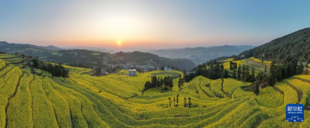 这是3月1日在云南省曲靖市罗平县马街镇拍摄的油菜花田(无人机全景照片)。