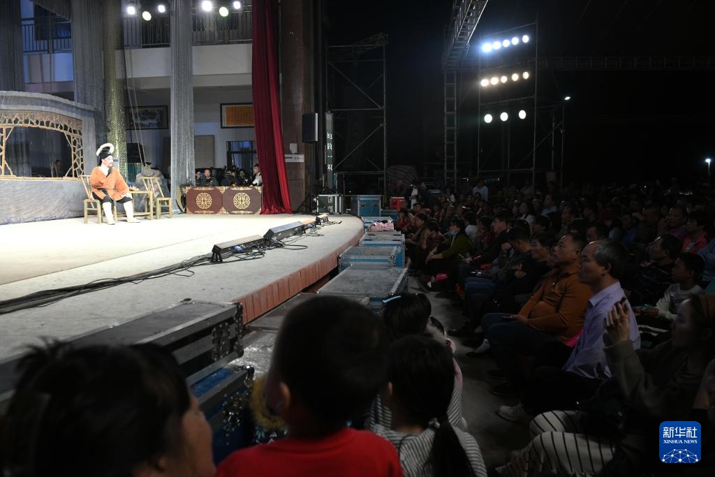2月28日晚,在广东省茂名化州市杨梅镇北亨村,群众观看广州粤剧院下辖广州红豆粤剧团的演出。