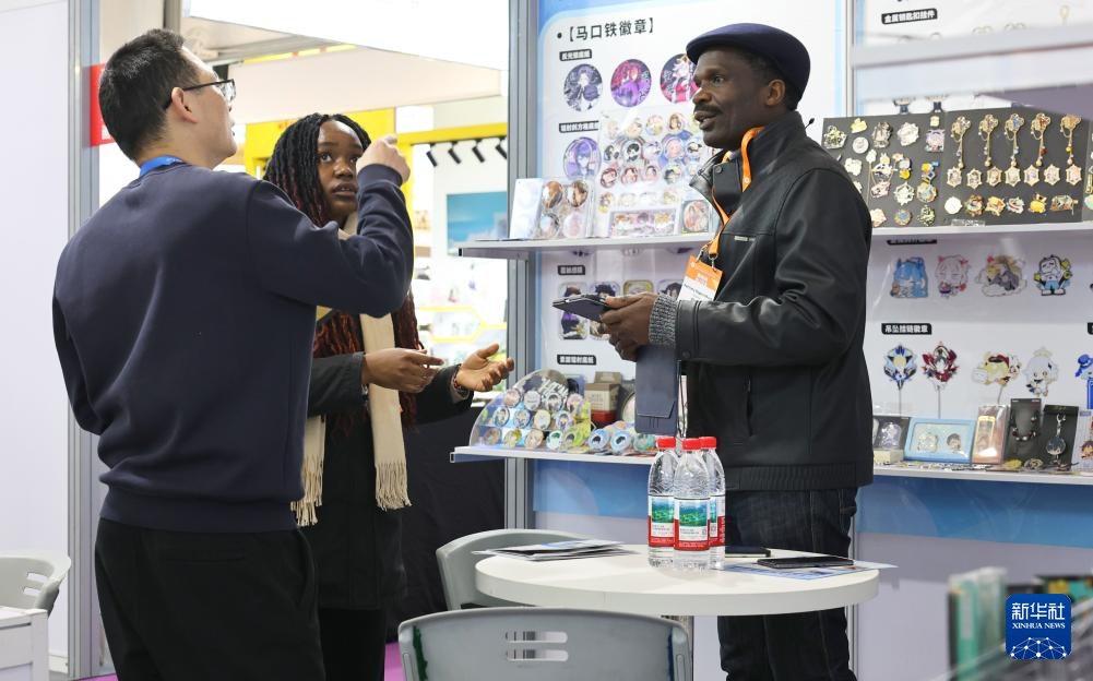 3月1日,展商工作人员(右一)向采购商介绍产品信息。