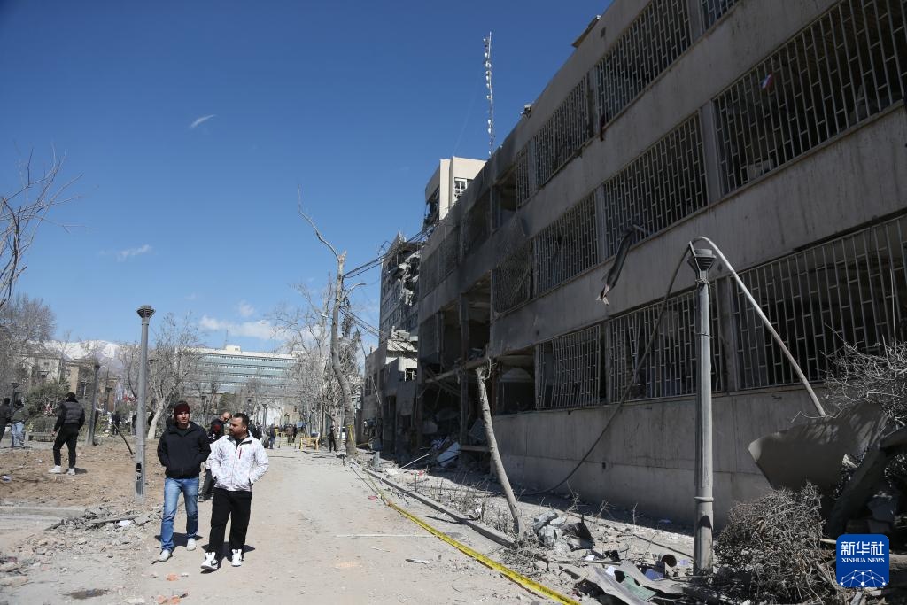 这是3月3日在伊朗德黑兰拍摄的一处在袭击中受损的建筑。