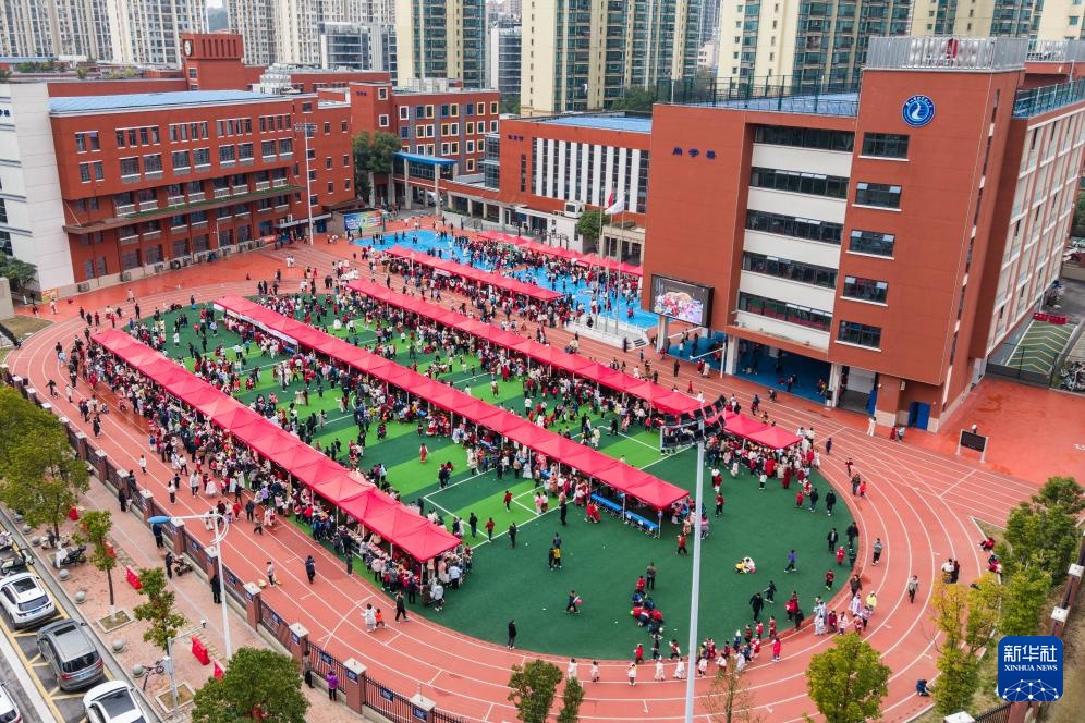 这是3月4日拍摄的春季开学爱心义卖活动现场(无人机照片)。