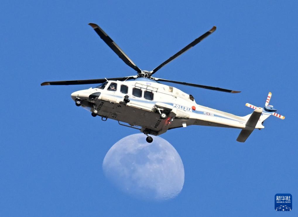 3月28日,一架警用直升机在意大利首都罗马上空飞行。