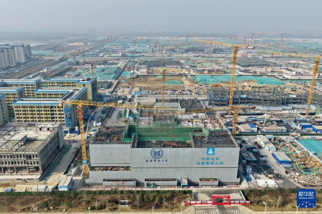 中国地质大学(北京)雄安校区建设现场(3月26日摄,无人机照片)。