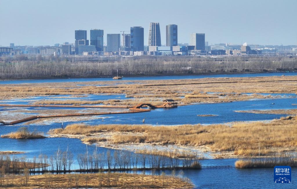 雄安新区“千年秀林”春意萌发(3月18日摄,无人机照片)。