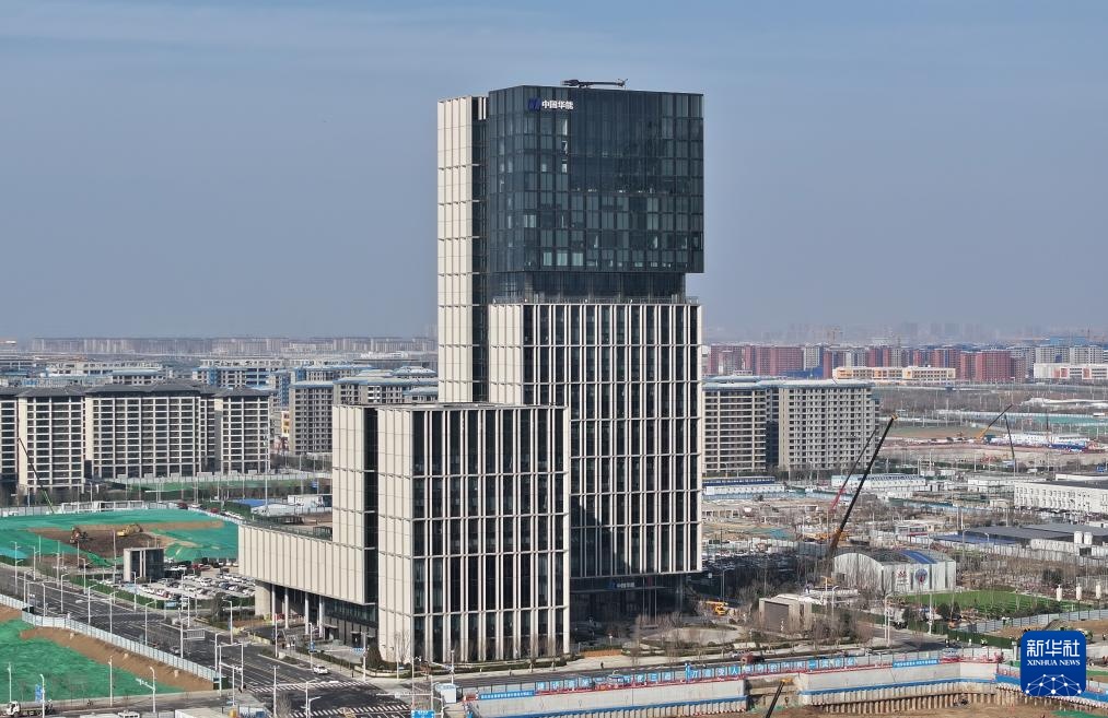 雄安新区华能总部大楼(3月15日摄,无人机照片)。