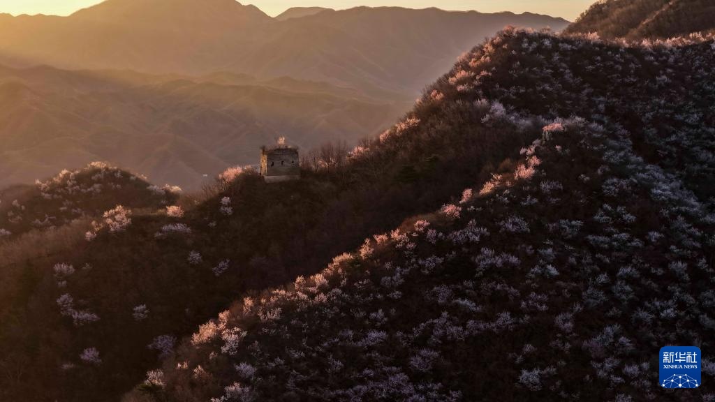 近日,随着气温回暖,河北省唐山市迁西县的长城周边山花烂漫,美如画卷。