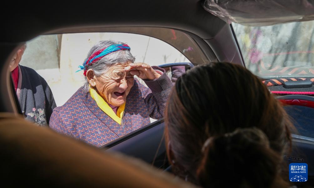 次仁桑姆叮嘱家人开车小心(3月26日摄)。