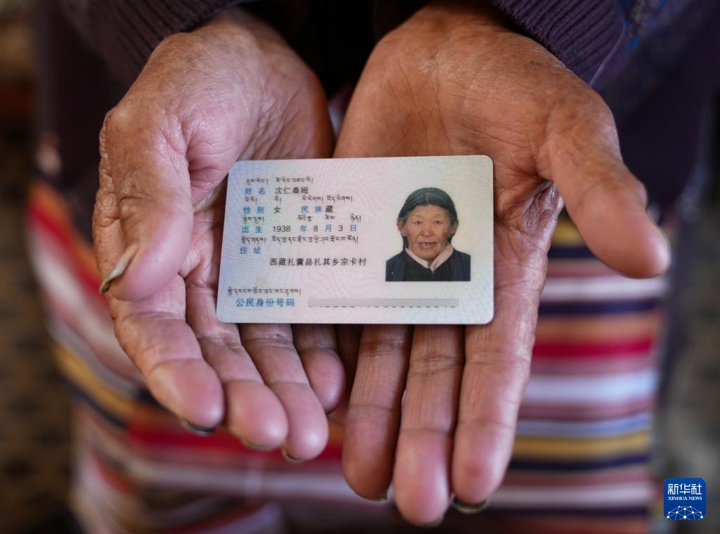 次仁桑姆的身份证(3月26日摄)。