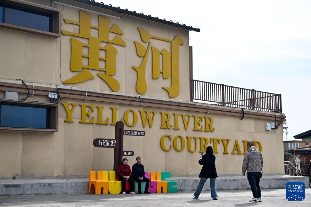 3月30日,游客在位于画匠营子村的“天下黄河第一村”景区拍照。