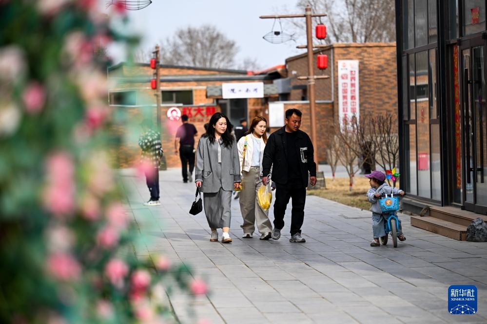 3月31日,游客在位于画匠营子村的“天下黄河第一村”景区游览。