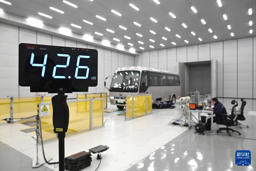 3月30日,技术人员在宇通振动噪声试验室内工作。