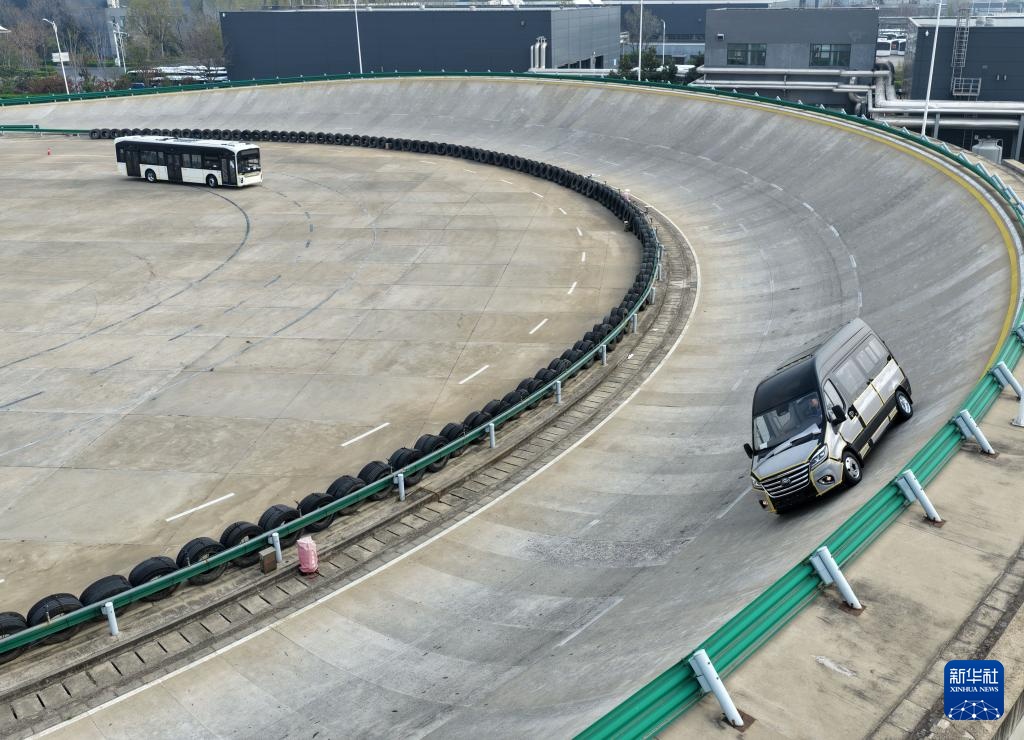 3月30日,客车在宇通新能源厂区试验场内测试(无人机照片)。