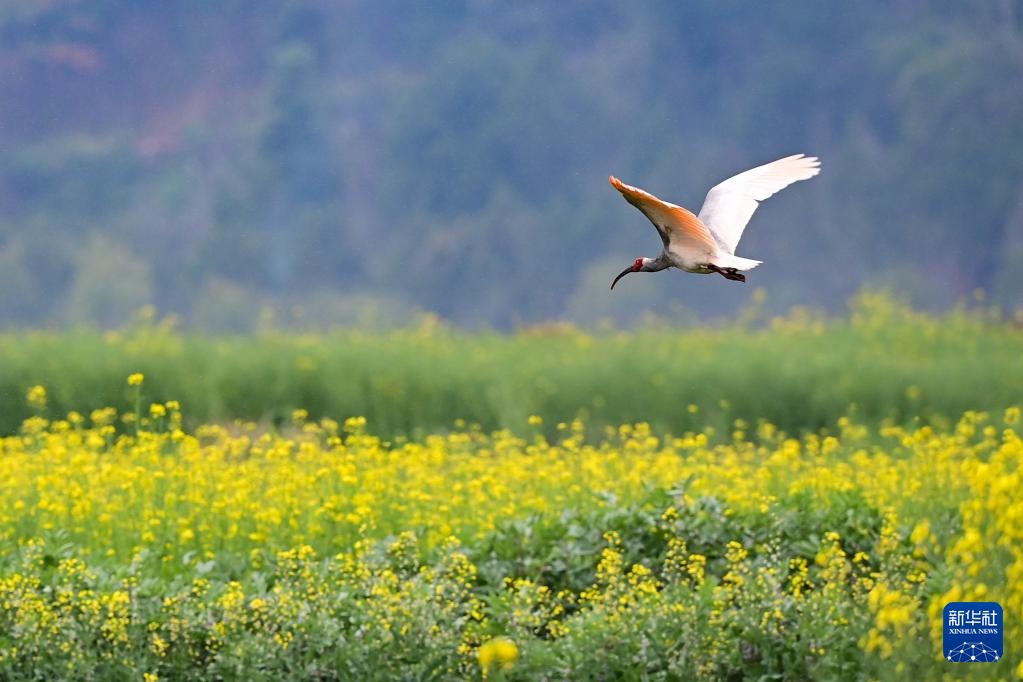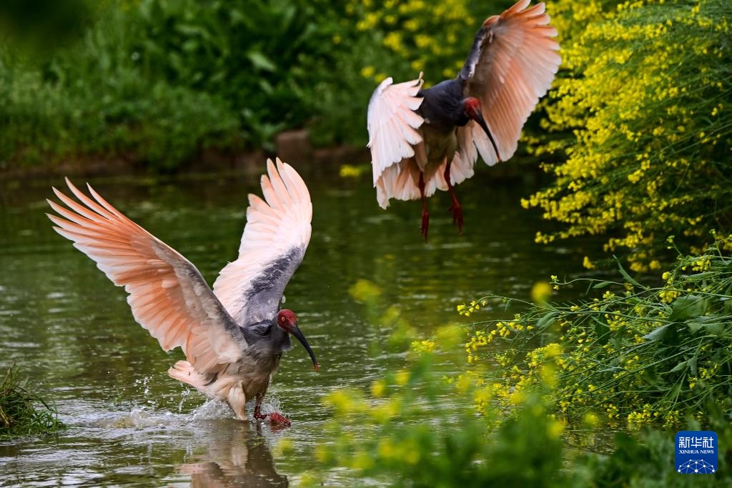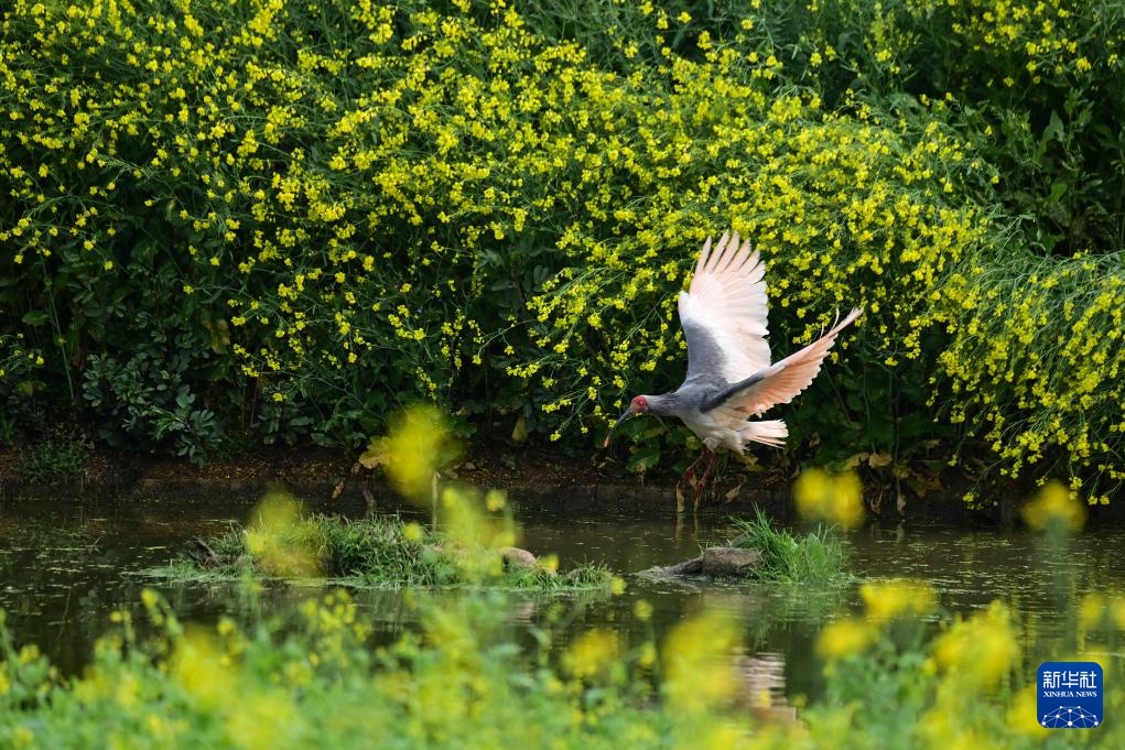 每年春天,“朱鹮之乡”陕西省汉中市洋县迎来朱鹮繁育季。在朱鹮国家级自然保护区朱鹮人工繁育中心周边村落的油菜花田与林间,野生朱鹮衔枝筑巢、觅食嬉戏的身影随处可见。