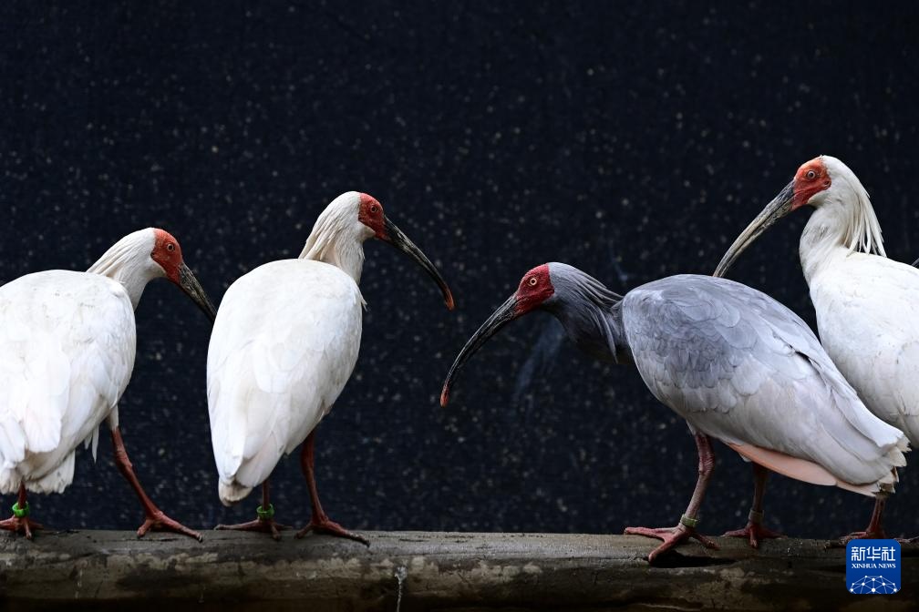 3月30日,在陕西汉中朱鹮国家级自然保护区朱鹮人工繁育中心,野外受伤被救治的朱鹮在笼舍休憩。