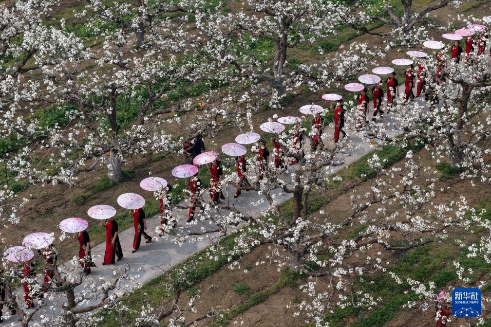 眼下,安徽省宿州市砀山县50万亩梨树迎来盛花期,千树万树梨花如云似雪,漫野飘香。丰富多彩的活动在梨园上演,吸引各地游客前来踏青赏花。