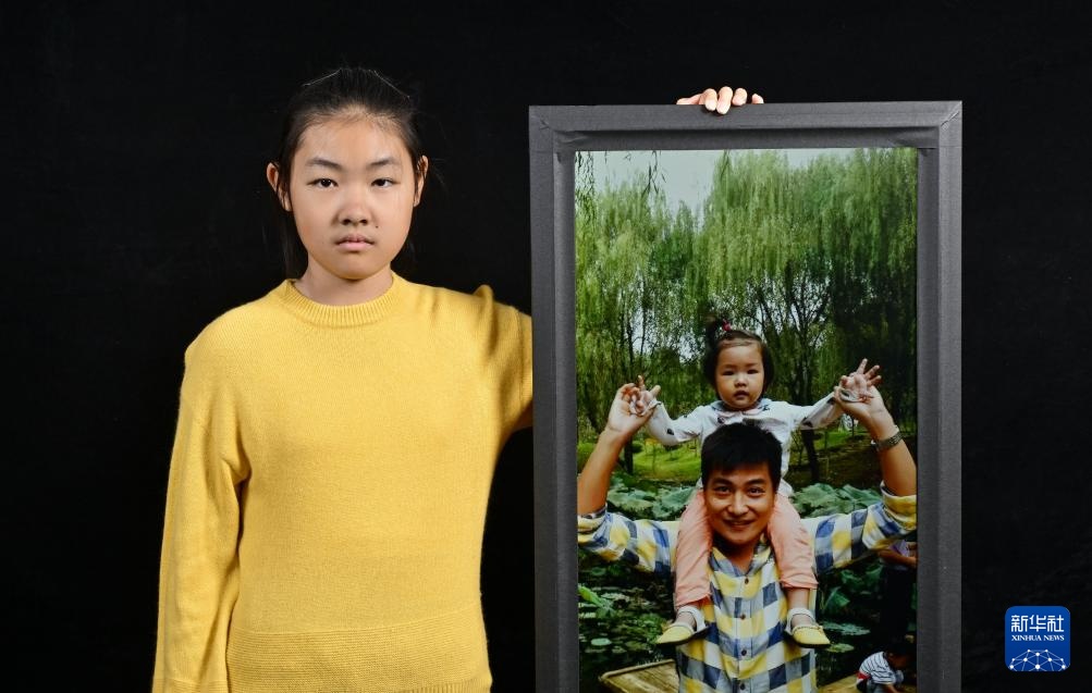 张超的女儿张上明珠手扶与父亲的合影(2026年1月4日摄)。父亲牺牲时,她只有两岁。