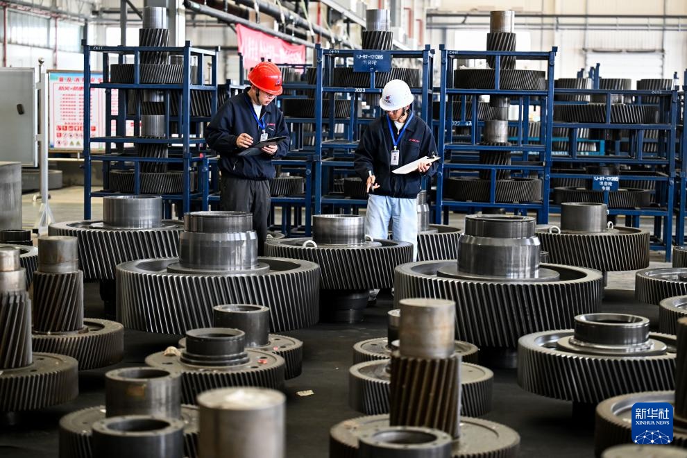 3月31日,工人在南高齿(包头)传动设备有限公司盘点齿轮库存。