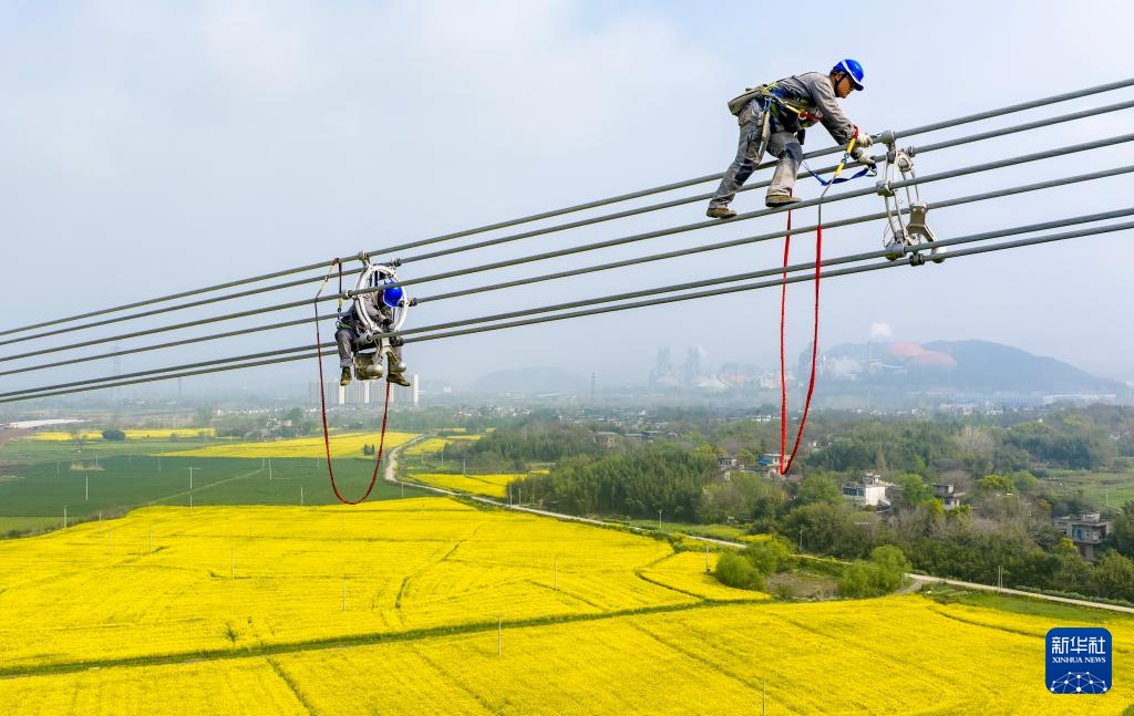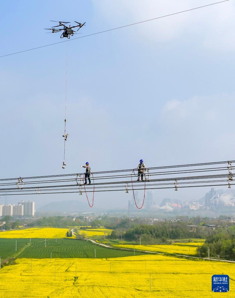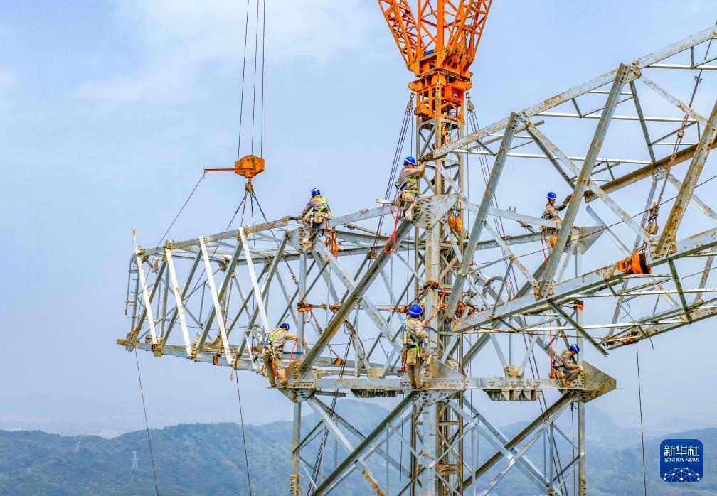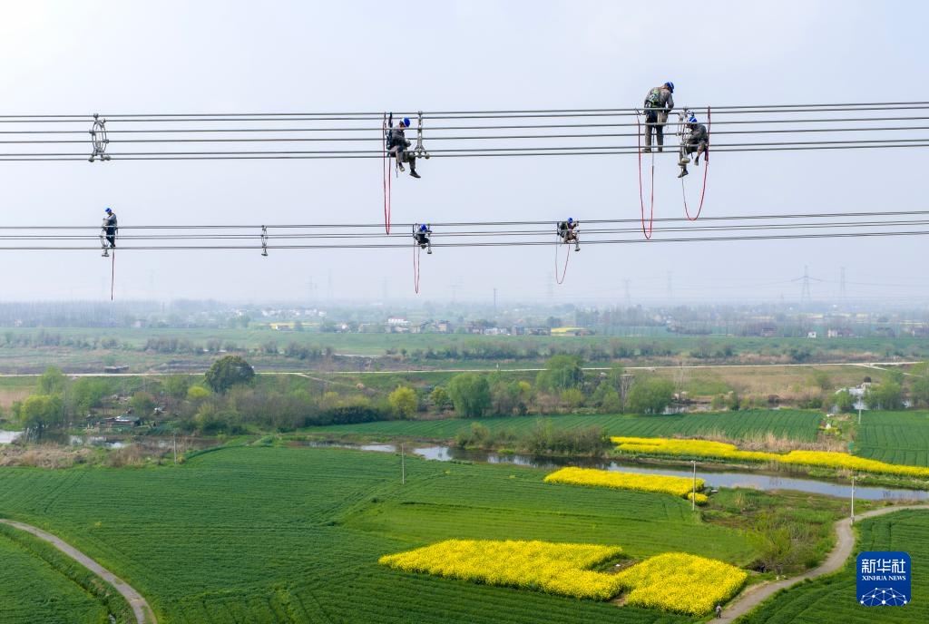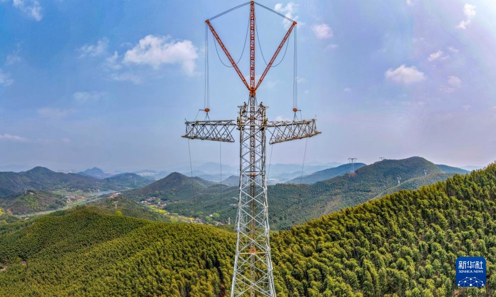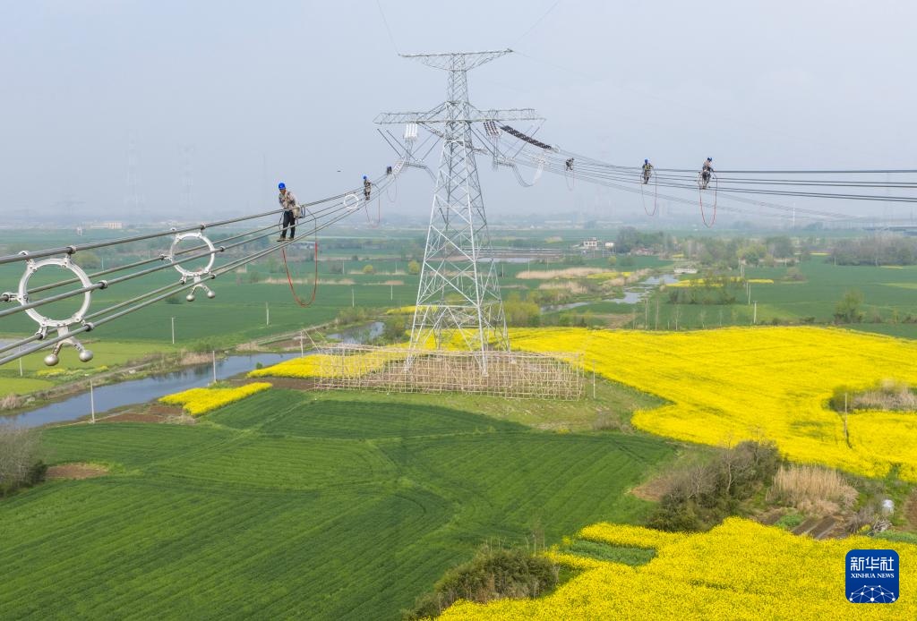 近日,在安徽省芜湖市繁昌区境内,电力工人抢抓春季有利天气,奋战在甘肃—浙江±800千伏特高压直流输电工程施工建设一线,保障能源通道重点工程进度。甘肃—浙江±800千伏特高压直流输电工程是国家“十四五”电力发展规划重点工程,线路全长2370千米,工程贯通后每年可输送电能约360亿千瓦时。