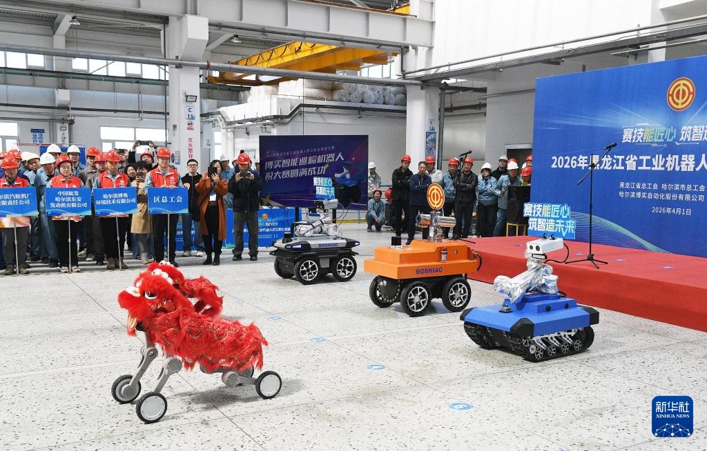4月1日拍摄的2026年黑龙江省工业机器人职工职业技能大赛开幕式现场。