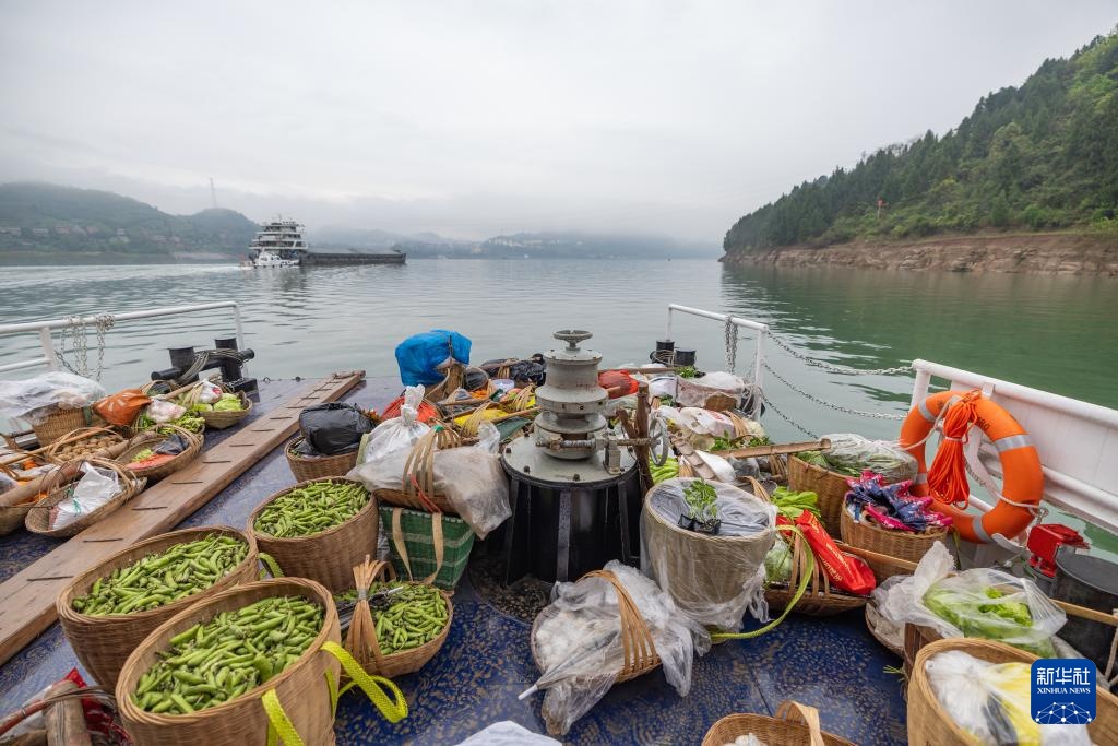 3月31日,在长江重庆忠县段,满载背篓的“新渝忠客2180”客轮驶向忠县县城。