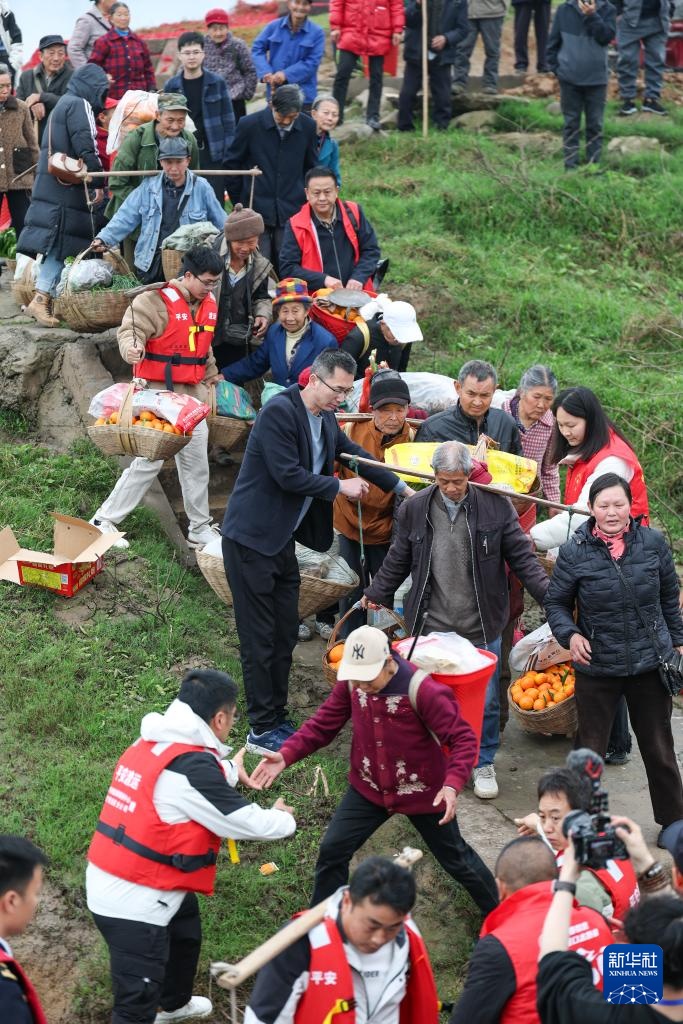 3月31日,在长江重庆忠县段,菜农在志愿者的帮助下登上“新渝忠客2180”客轮。