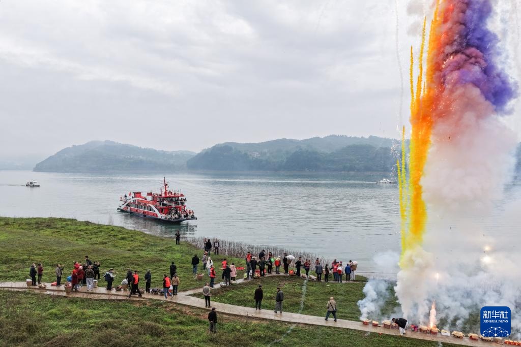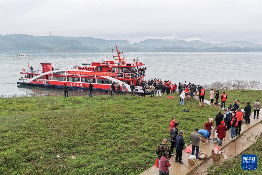 3月31日,在重庆忠县西山码头,群众热情欢迎搭乘首趟“新渝忠客2180”客轮的乘客。