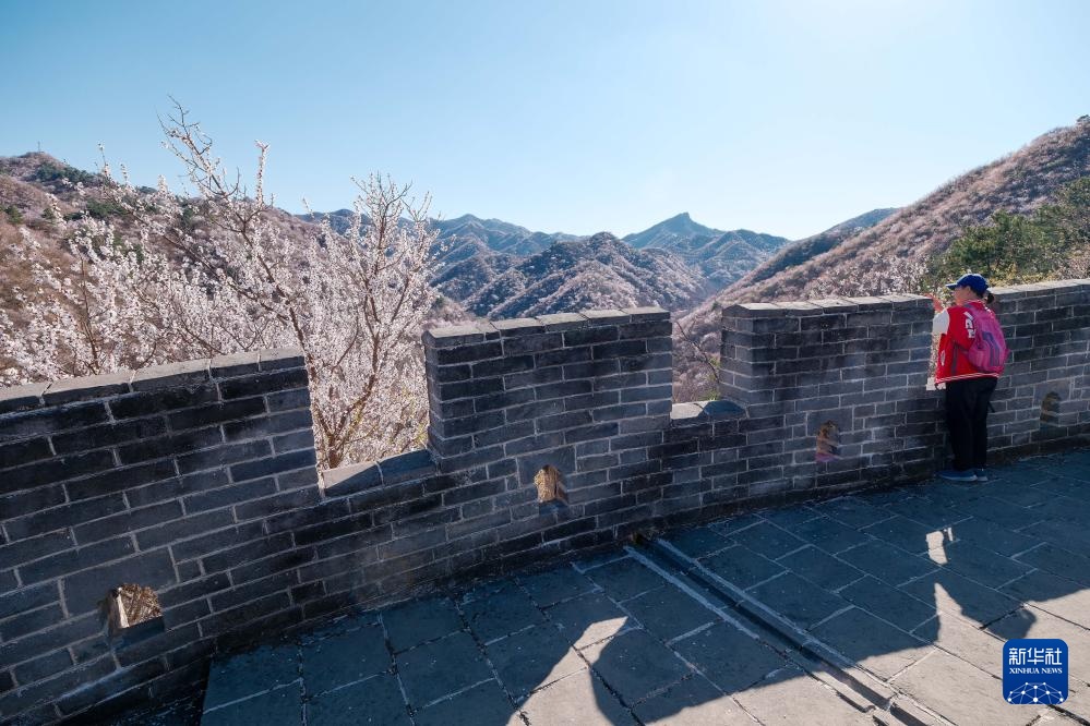 仲春时节,北京怀柔黄花城水长城边,山花竞相绽放,与长城交相辉映,构成一幅壮丽的春日画卷。