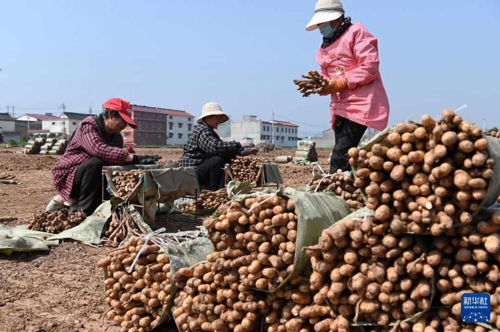 4月1日,农民在河南省沁阳市紫陵镇王村分选怀山药种。
