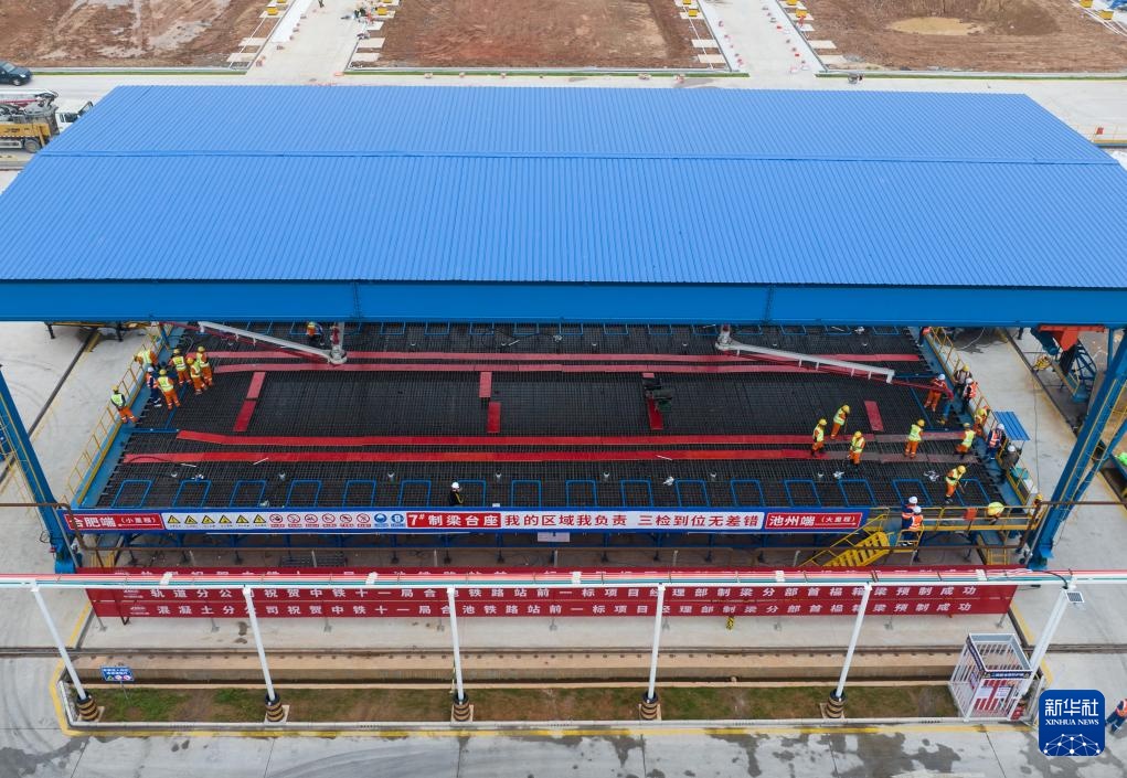 这是4月16日拍摄的中铁十一局乐桥镇制梁场(无人机照片)。