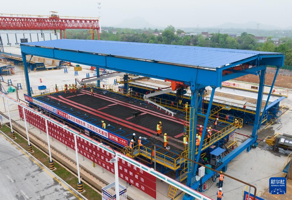 4月16日,新建合肥至池州铁路全线首榀箱梁在位于合肥市庐江县的中铁十一局乐桥镇制梁场预制成功,为后续箱梁规模化预制、架设等施工奠定了坚实基础。