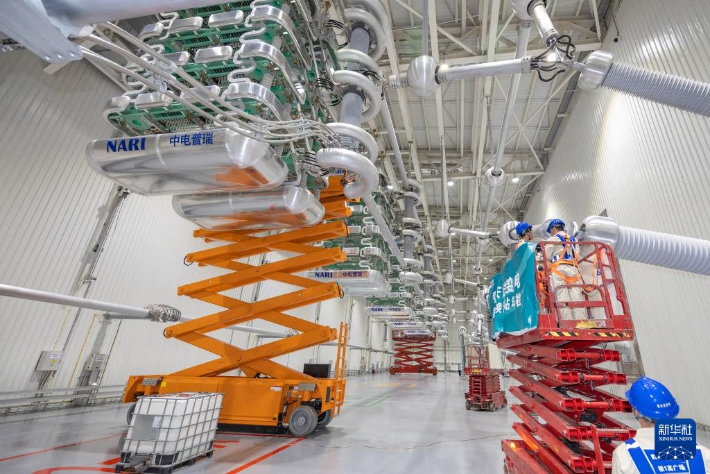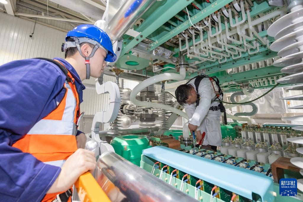 4月15日,检修人员在“疆电入渝”工程渝北换流站换流阀区域检修。