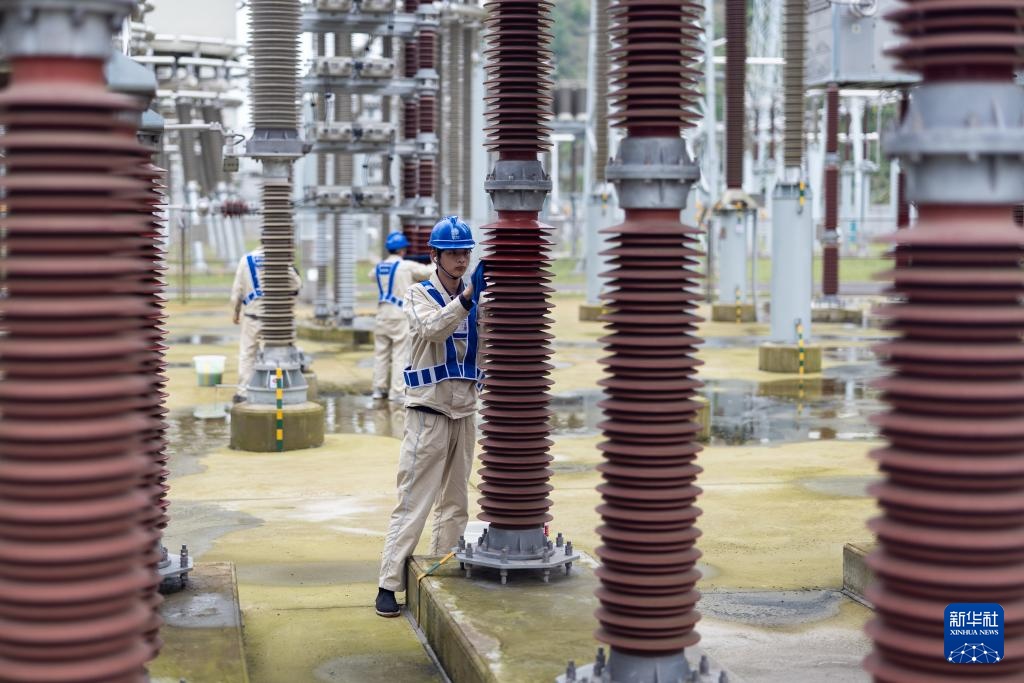 4月15日,检修人员在“疆电入渝”工程渝北换流站直流场及接地极区域检修。
