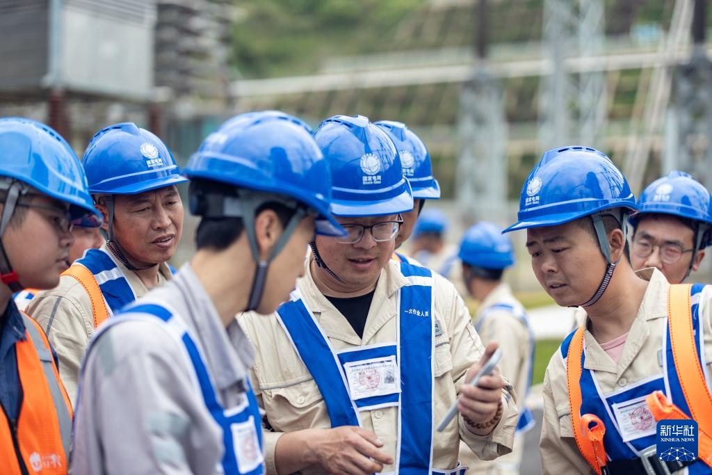 4月15日,检修人员在“疆电入渝”工程渝北换流站查看检修任务。