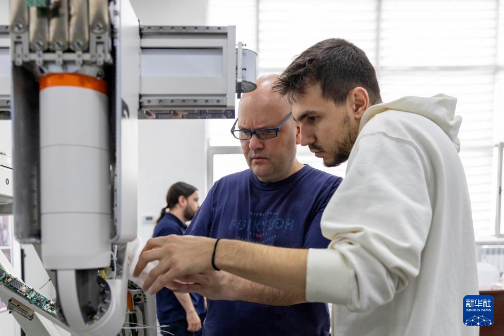 4月16日,在哈尔滨思哲睿智能医疗设备股份有限公司技术服务培训中心,国外的临床支持工程师在学习调试设备。