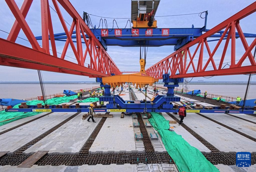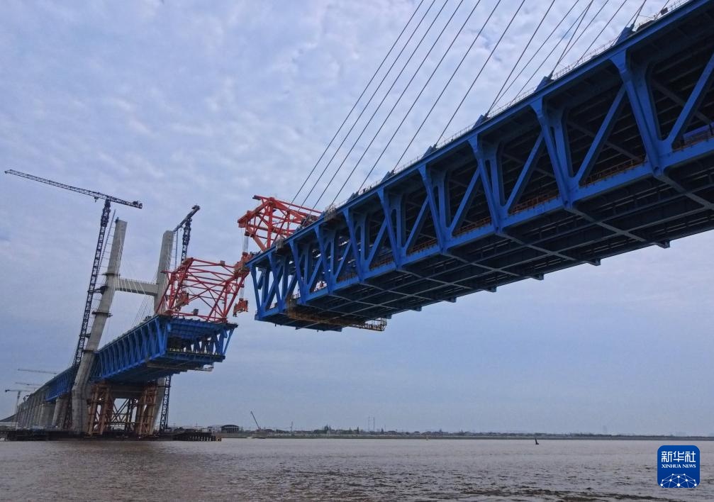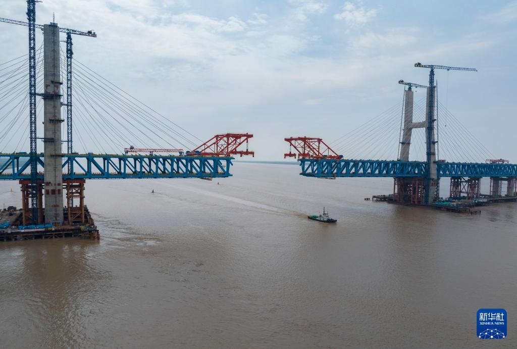 崇启公铁长江大桥是沪渝蓉高铁沪宁段关键控制性工程,全长4.09公里,横跨长江入海口北支航道,采用双层公铁两用无砟轨道斜拉桥的设计,上层为设计时速100公里的双向六车道一级公路,下层为设计时速350公里的双线高速铁路及设计时速250公里的双线城际铁路,主通航孔跨径达400米。目前大桥主跨钢梁4个节段等待吊装,预计5月下旬完成大桥合龙。