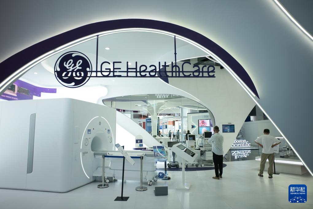 4月16日,在海南省琼海市博鳌乐城国际医疗旅游先行区,观众在第六届消博会国际健康消费分展区参观一款GE医疗7.0T磁共振设备。
