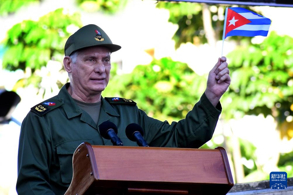 4月16日,在古巴首都哈瓦那,古共中央第一书记、古巴国家主席迪亚斯-卡内尔在纪念集会上发表讲话。