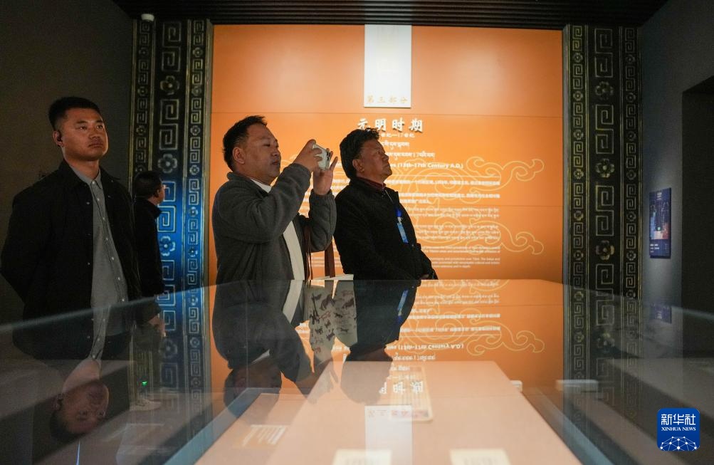 4月17日,西藏全区博物馆馆长培训班的学员在西藏博物馆现场交流学习。