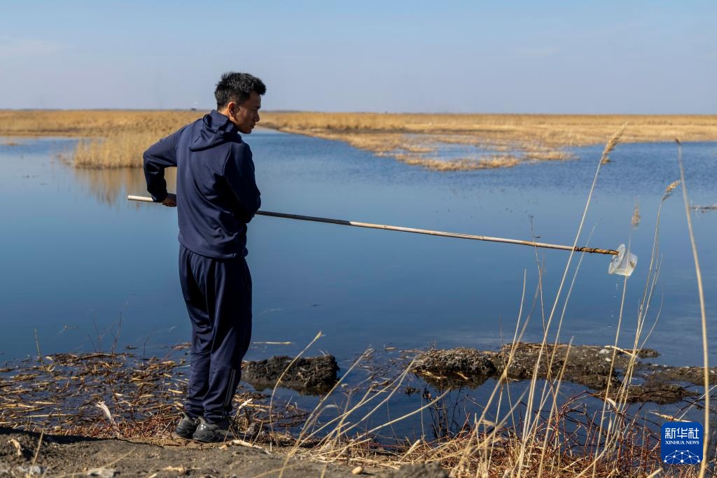 4月15日,七星河国家级自然保护区,巡护人员在观测鸟类动态。