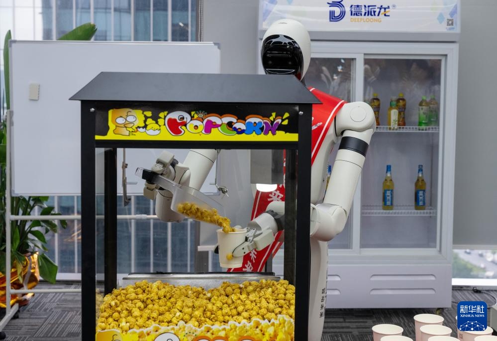 3月26日,在位于广州市海珠区的广东智动未来科技有限公司,机器人演示售卖爆米花。