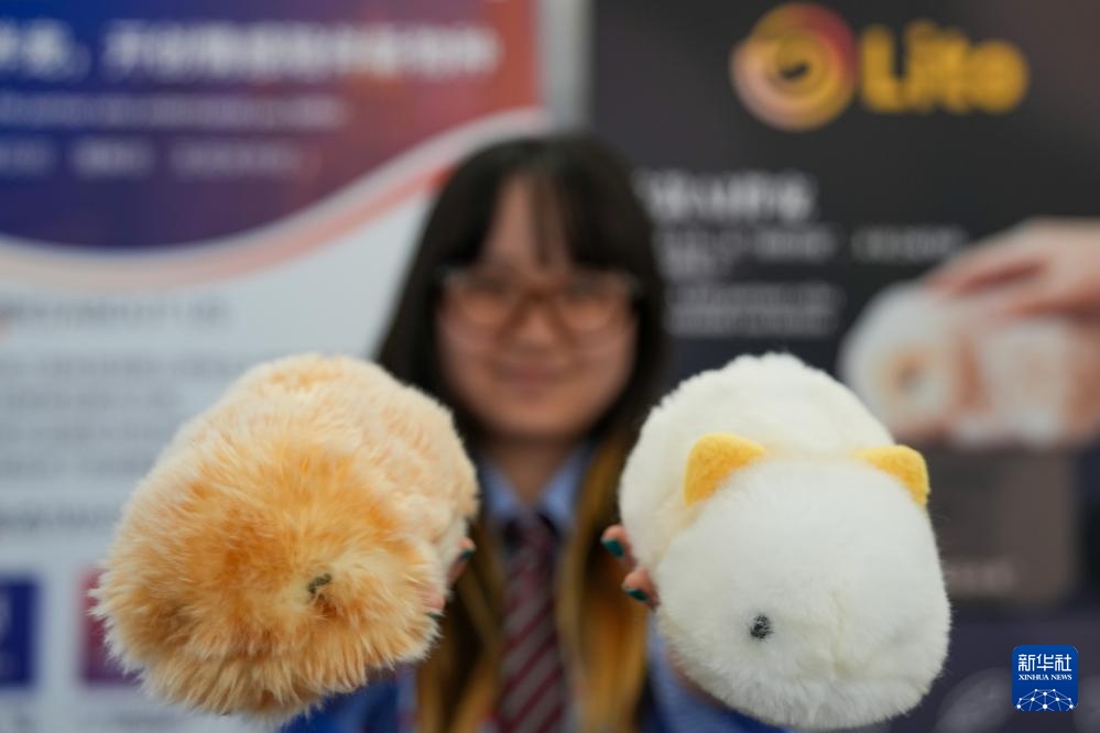 3月26日,在位于广州市海珠区的琶洲模方,广州芯宠工场科技有限公司工业设计师林堉展示该公司产品AI智能伴宠。