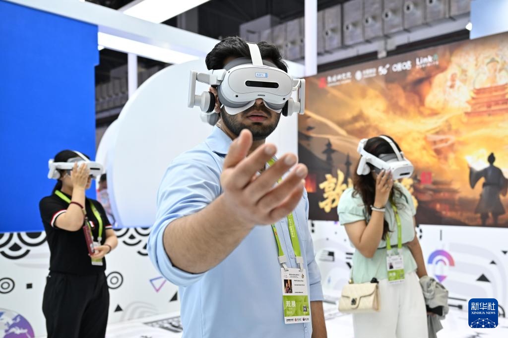 4月13日,参观者在海南举办的第六届消博会现场体验一款VR设备。