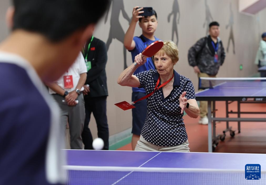 4月11日,中美“乒乓外交”亲历者康妮·史维利斯在石家庄外国语学校与学生进行乒乓球友谊赛。4月11日至12日,“青年之友”中美青少年友好交流暨中美“乒乓外交”55周年纪念活动在河北石家庄举办。