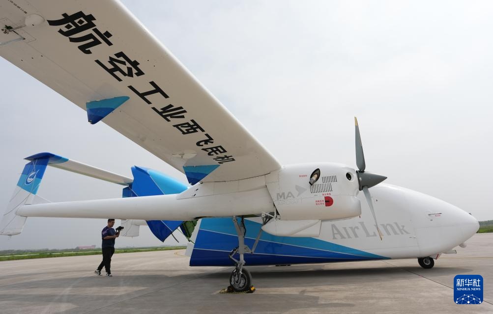 4月15日,记者在航空工业民机试飞中心渭南运营基地拍摄完成首飞的HH-200航空商用无人运输系统。