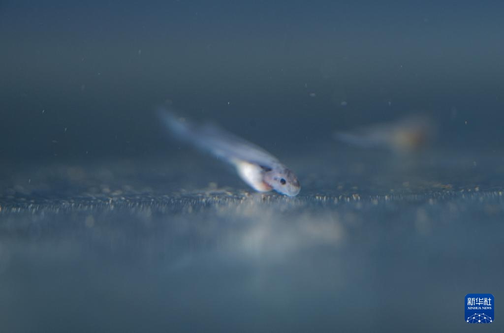 4月14日拍摄的在江安县香炉滩水域发现的长江鲟鱼卵原位孵出的鱼苗。