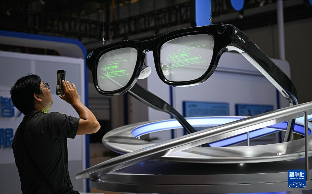 4月10日在第六届消博会主会场拍摄的AI眼镜模型。
