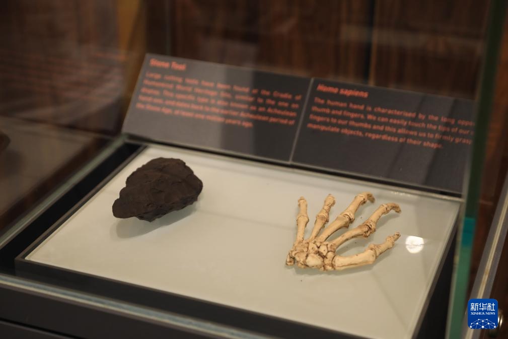 这是2月19日在南非豪滕省人类摇篮遗址的玛罗彭展览馆内拍摄的展品。