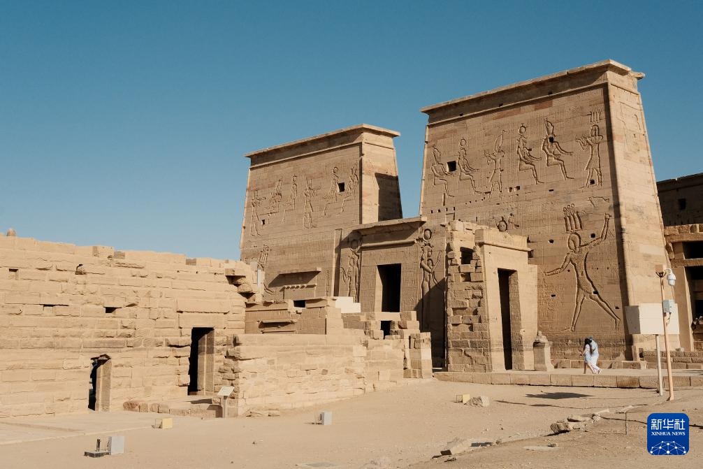 这是2月21日在埃及南部阿斯旺省拍摄的菲莱神庙。